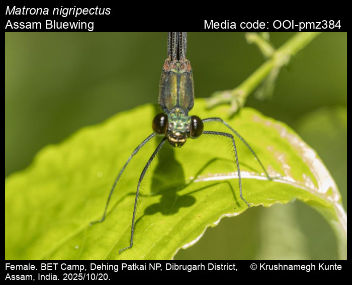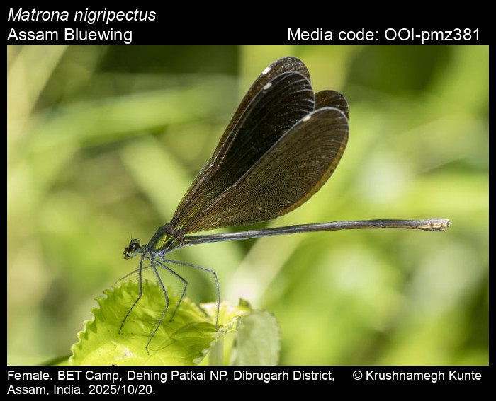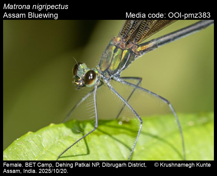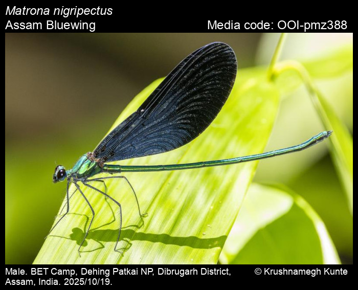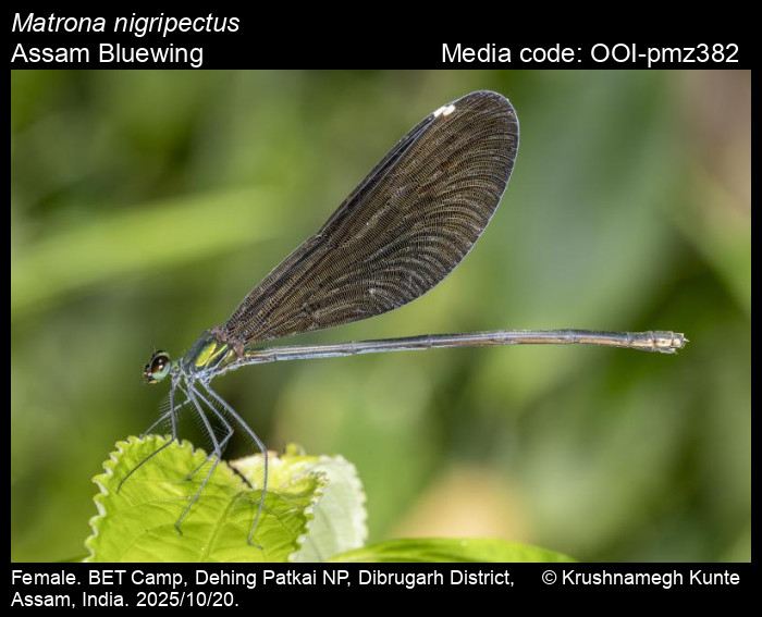 Sawant, D., A. Dalvi, and S. Bagchi. 2026. Matrona nigripectus Selys, 1879 – Assam Bluewing. In (Chief Editors). Butterflies of India, v. . Published by the Indian Foundation for Butterflies. URL: https://www.indianodonata.org/matrona-nigripectus, accessed 2026/02/07.