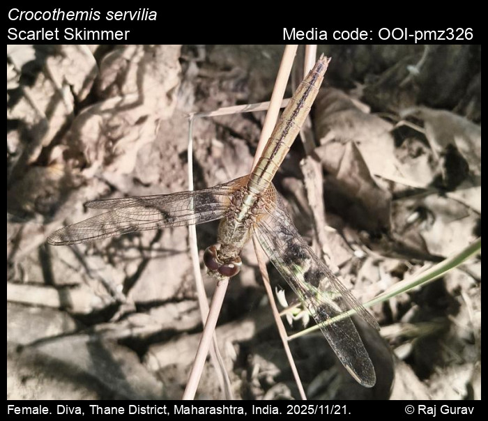 Anonymous 2026. Crocothemis servilia Drury, 1770 – Scarlet Skimmer. In (Chief Editors). Butterflies of India, v. . Published by the Indian Foundation for Butterflies. URL: https://www.indianodonata.org/crocothemis-servilia, accessed 2026/01/14.