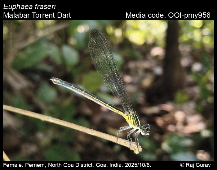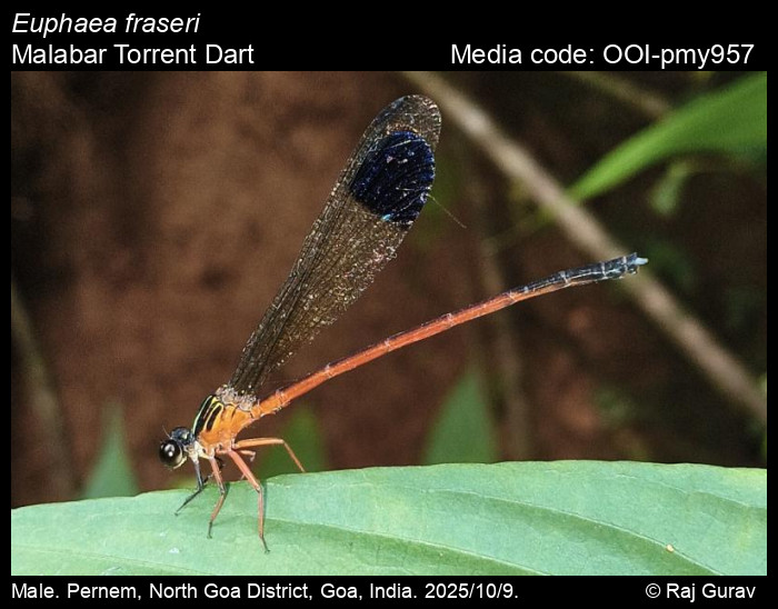 Anonymous 2025. Euphaea fraseri Laidlaw, 1920 – Malabar Torrent Dart. In (Chief Editors). Butterflies of India, v. . Published by the Indian Foundation for Butterflies. URL: https://www.indianodonata.org/euphaea-fraseri, accessed 2025/10/19.