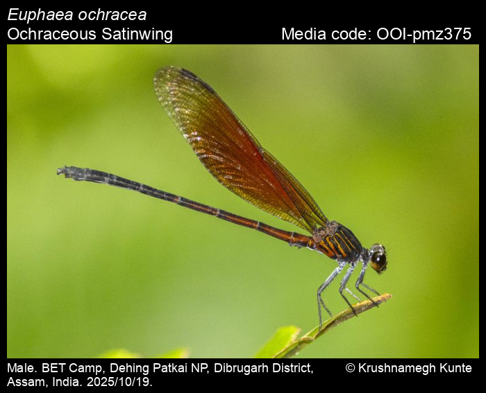 Sawant, D., A. Dalvi, and S. Bagchi. 2026. Euphaea ochracea Selys, 1859 – Ochraceous Satinwing. In (Chief Editors). Butterflies of India, v. . Published by the Indian Foundation for Butterflies. URL: https://www.indianodonata.org/euphaea-ochracea, accessed 2026/02/07.
