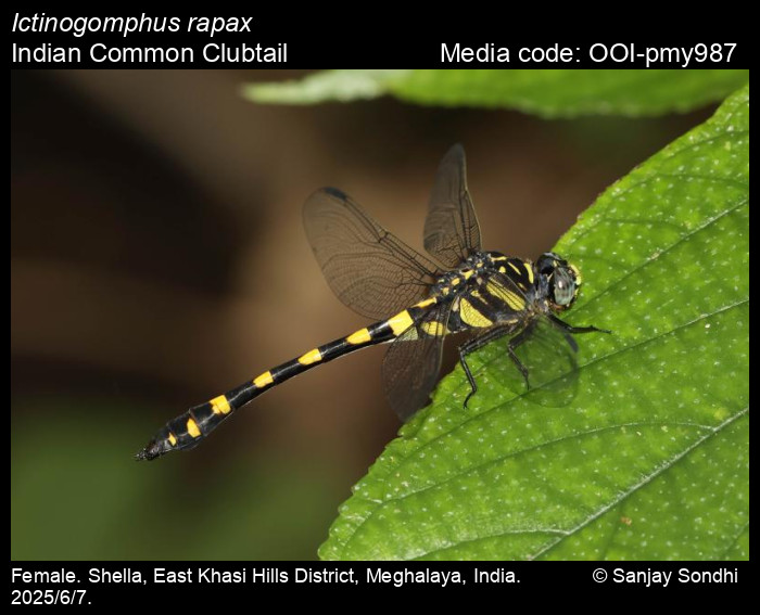 Anonymous 2025. Ictinogomphus rapax Rambur, 1842 – Indian Common Clubtail. In (Chief Editors). Butterflies of India, v. . Published by the Indian Foundation for Butterflies. URL: https://www.indianodonata.org/ictinogomphus-rapax, accessed 2025/11/02.