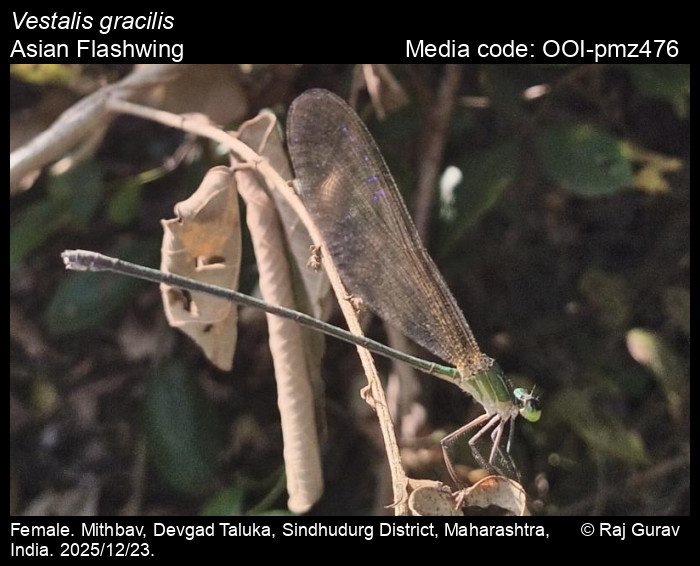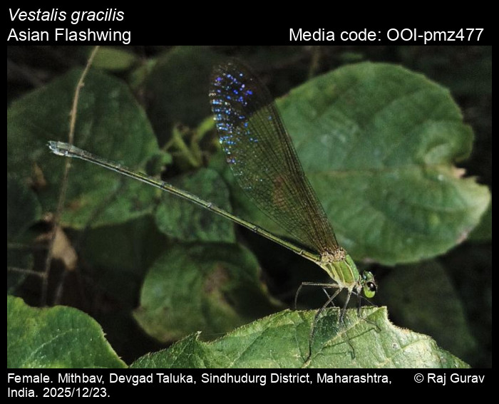 Sawant, D., A. Dalvi, and S. Bagchi. 2026. Vestalis gracilis Rambur, 1842 – Asian Flashwing. In (Chief Editors). Butterflies of India, v. . Published by the Indian Foundation for Butterflies. URL: https://www.indianodonata.org/vestalis-gracilis, accessed 2026/02/07.